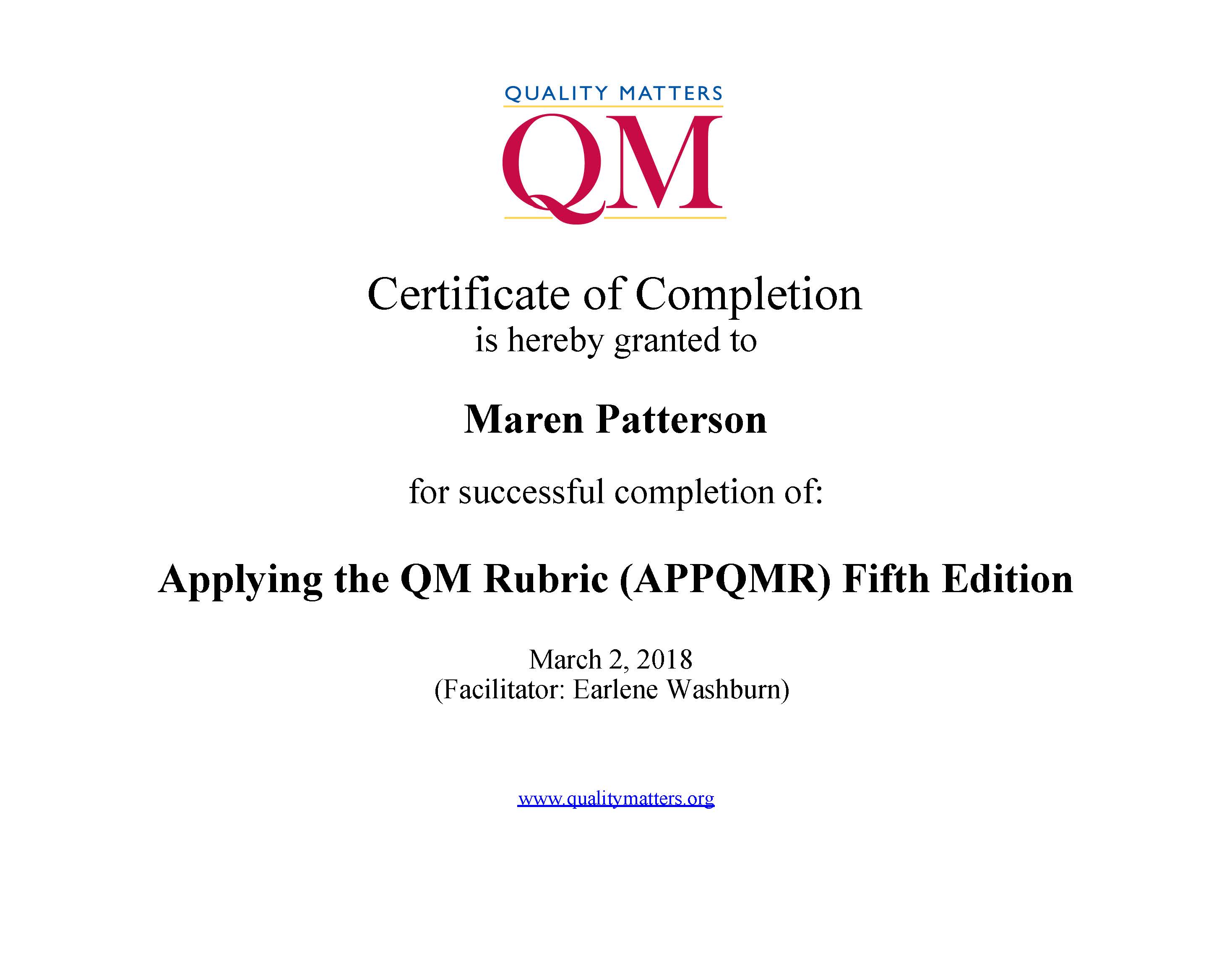 Certified - Applying the Quality Matters Rubric (APPQMR)“I have been repeatedly blown away by the projects he puts together... Besides being incredibly professional, polite, and an overall great human being to work with, he has a unique sense of creativity and continues to knock it out of the park when we task him with projects.“ (Ben Holt, Marketing Director)